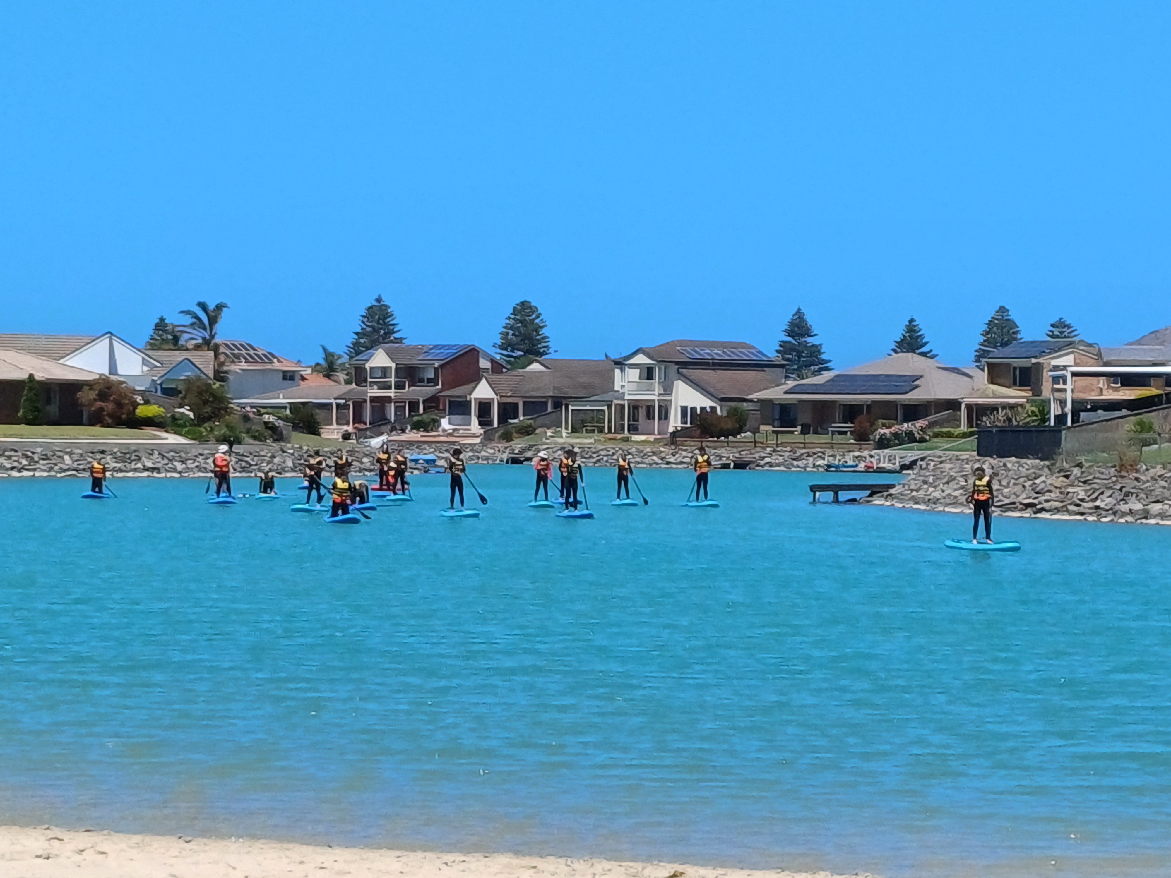 Stand-up Paddleboarding is most often conducted at Encounter Lakes and is a welcome addition to our selection of aquatics activities.